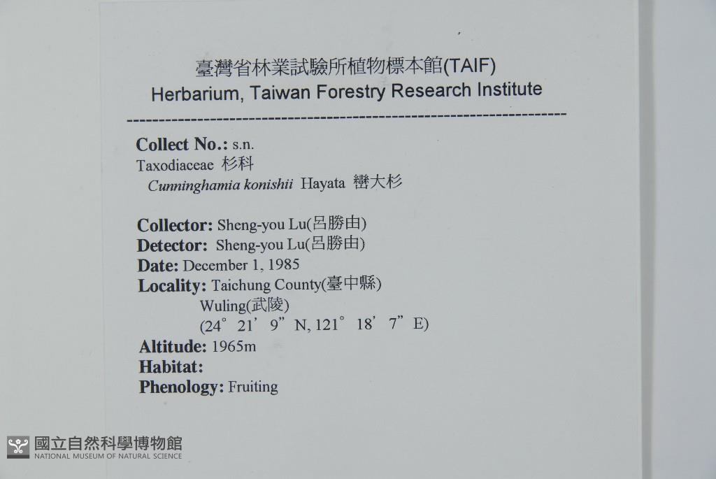 Scientific Name: Cunninghamia konishii Hayata