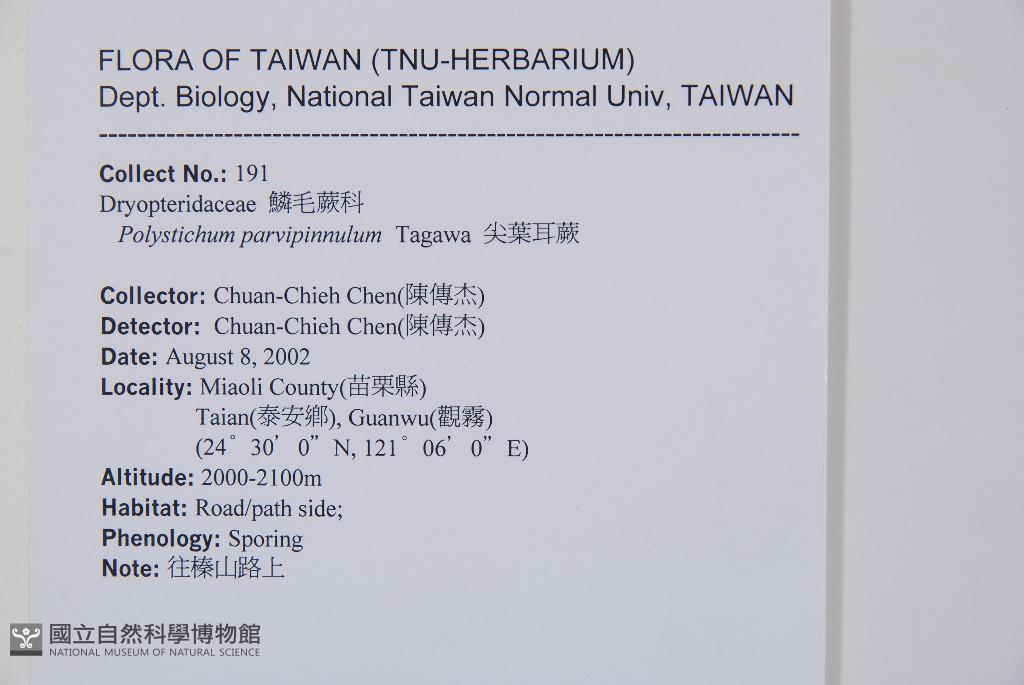 Scientific Name: Polystichum parvipinnulum Tagawa
