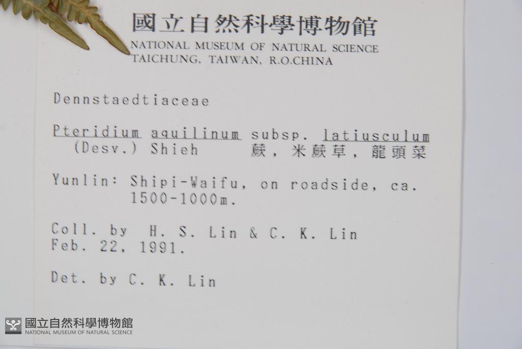 Scientific Name: Pteridium aquilinum (L.) Kuhn subsp. latiusculum (Desv.) Shieh