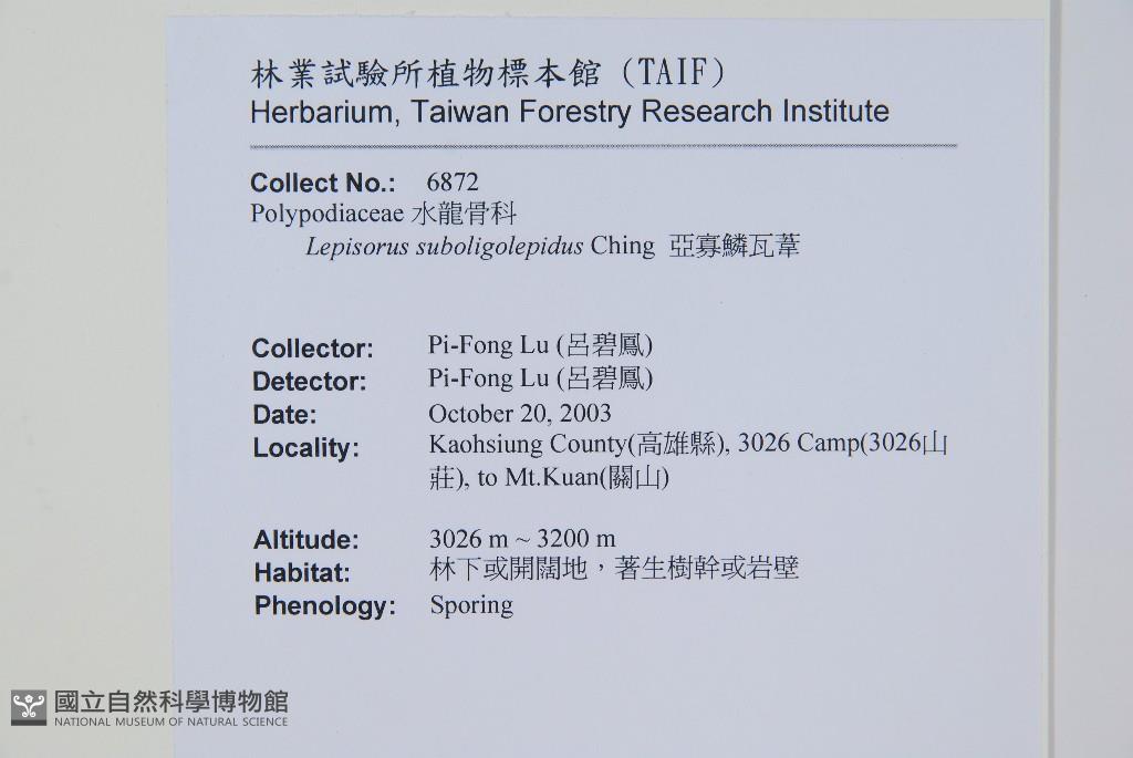 Scientific Name: Lepisorus suboligolepidus Ching