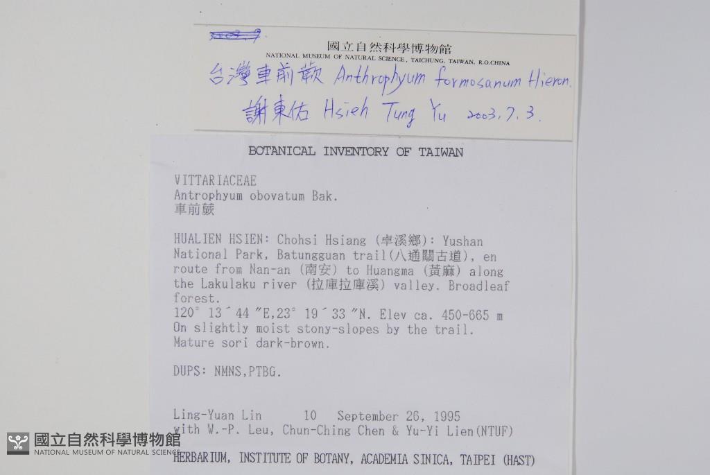 Collector:L. Y. Lin, W. P. Leu, C. C. Chen & Y. Y. Lien