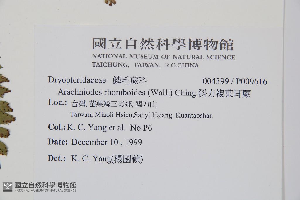 Scientific Name: Arachniodes rhomboides (Wall.) Ching