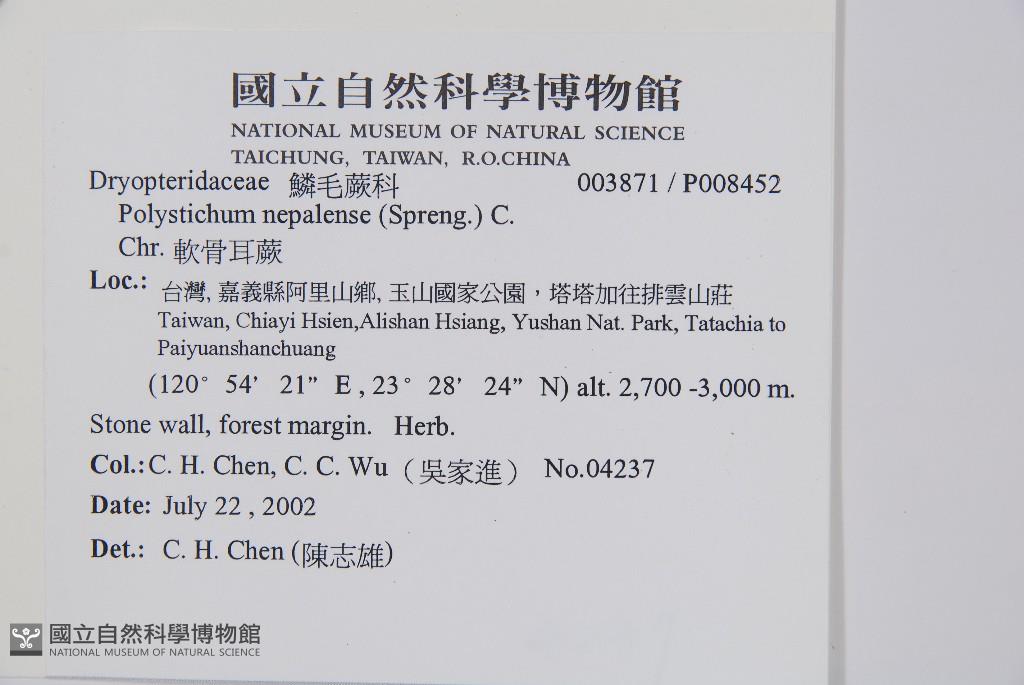 Scientific Name: Polystichum nepalense (Spreng.) C. Chr.