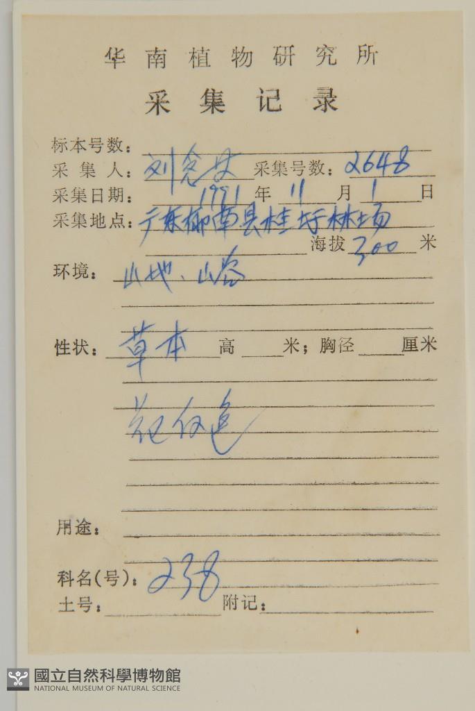 Collector's No.:劉?2648