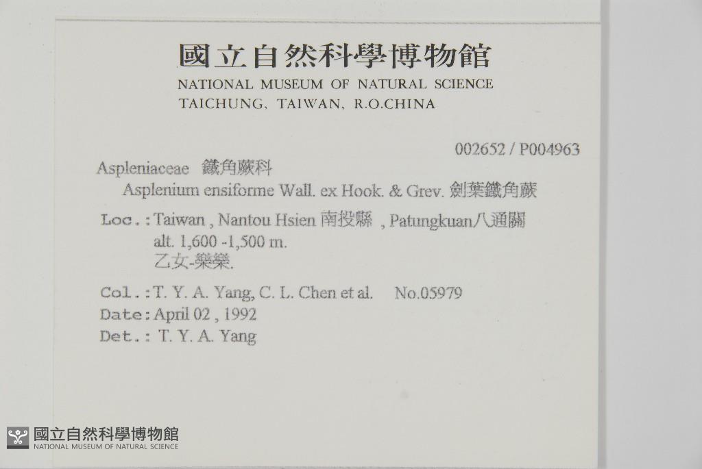 Scientific Name: Asplenium ensiforme Wall. ex Hook. & Grev.