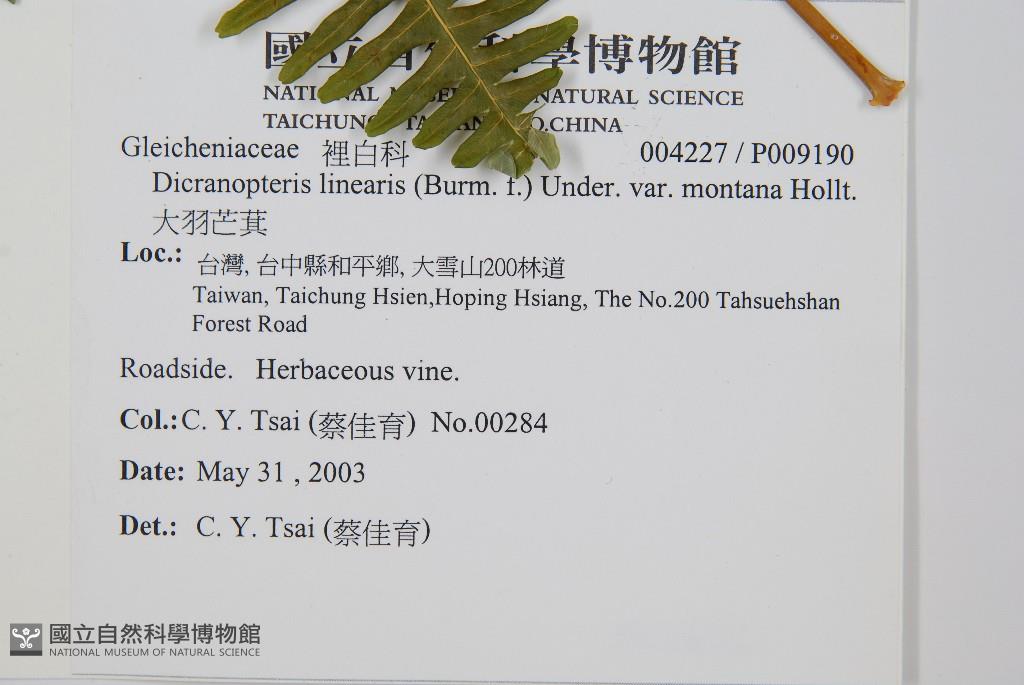 Scientific Name: Dicranopteris linearis (Burm. f.) Underw. var. montana Holtt.