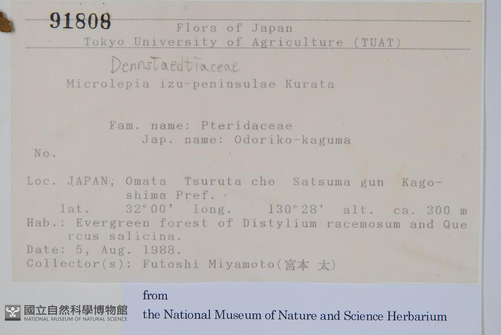 Scientific Name: Microlepia izupeninsulae Kurata
