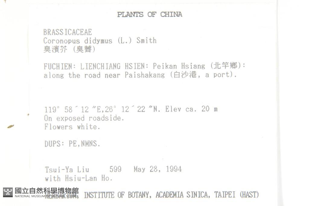 Collector:T. Y. Liu & H. L. Ho
