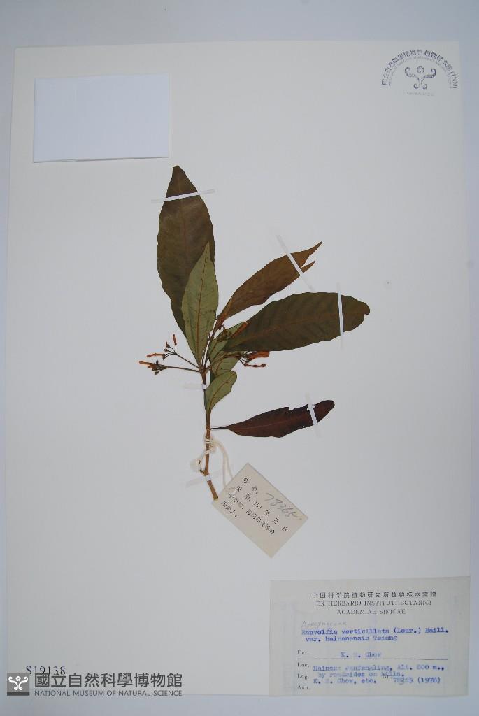 Scientific Name: Rauvolfia verticillata (Lour.) Baill. var. hainanensis Tsiang