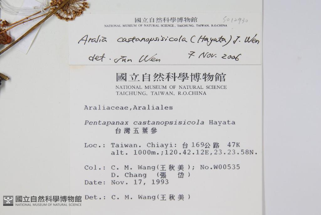 Scientific Name: Aralia castanopsisicola (Hayata) J. Wen