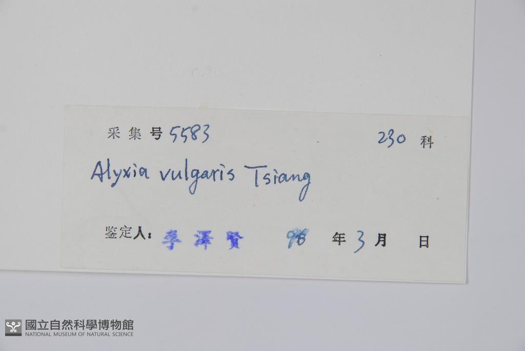 Scientific Name: Alyxia vulgaris Tsiang