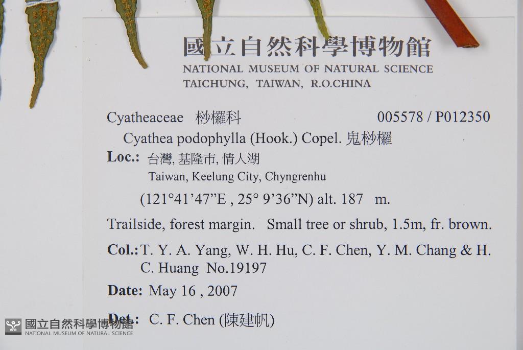 Scientific Name: Cyathea podophylla (Hook.) Copel.