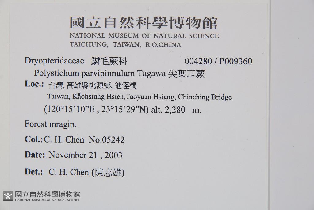 Scientific Name: Polystichum parvipinnulum Tagawa