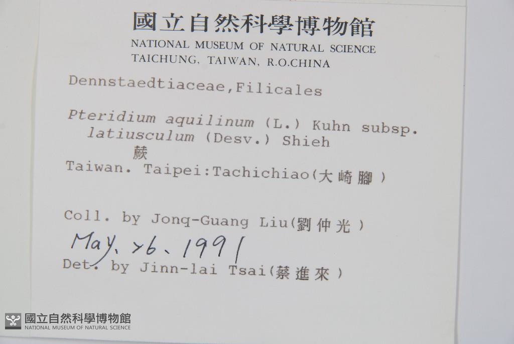 Scientific Name: Pteridium aquilinum (L.) Kuhn subsp. latiusculum (Desv.) Shieh