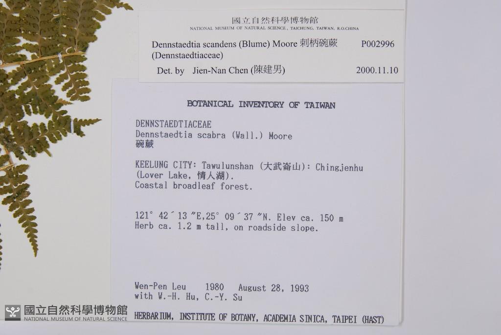 Scientific Name: Dennstaedtia scandens (Blume) Moore