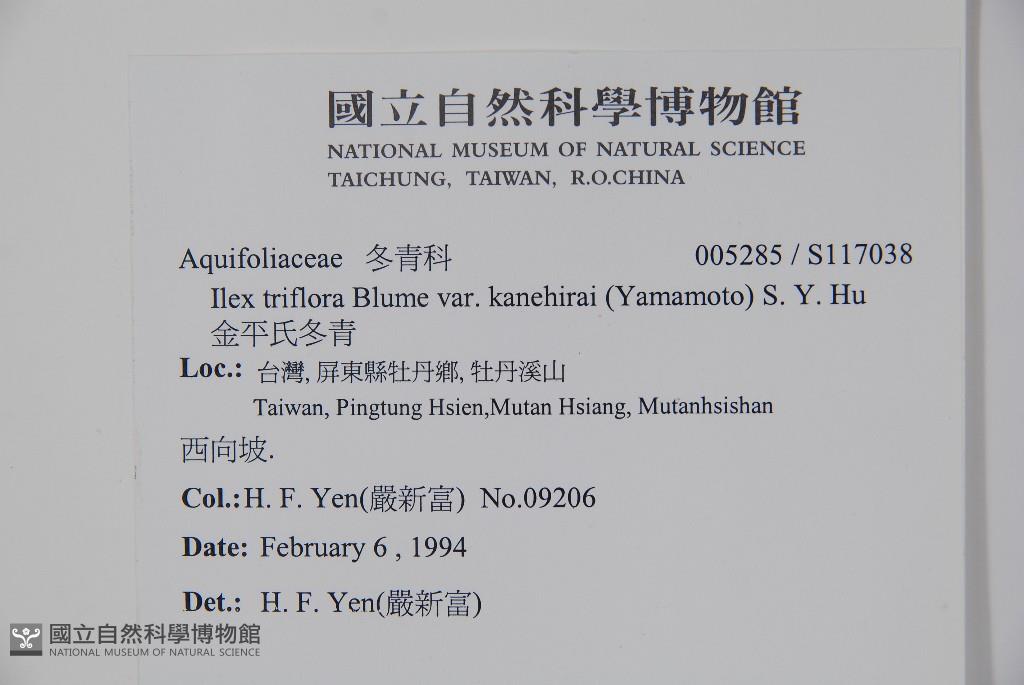Scientific Name: Ilex triflora Blume var. kanehirai (Yamamoto) S. Y. Hu