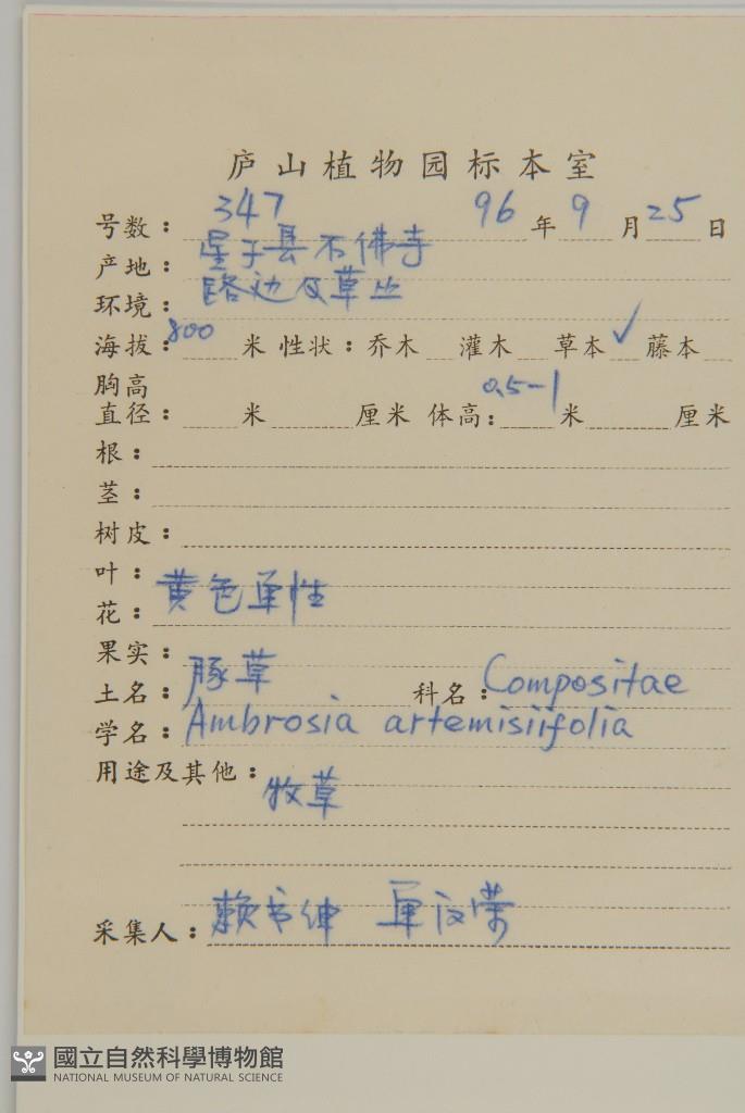 Collector:S. S. Lai & H. R. Shan