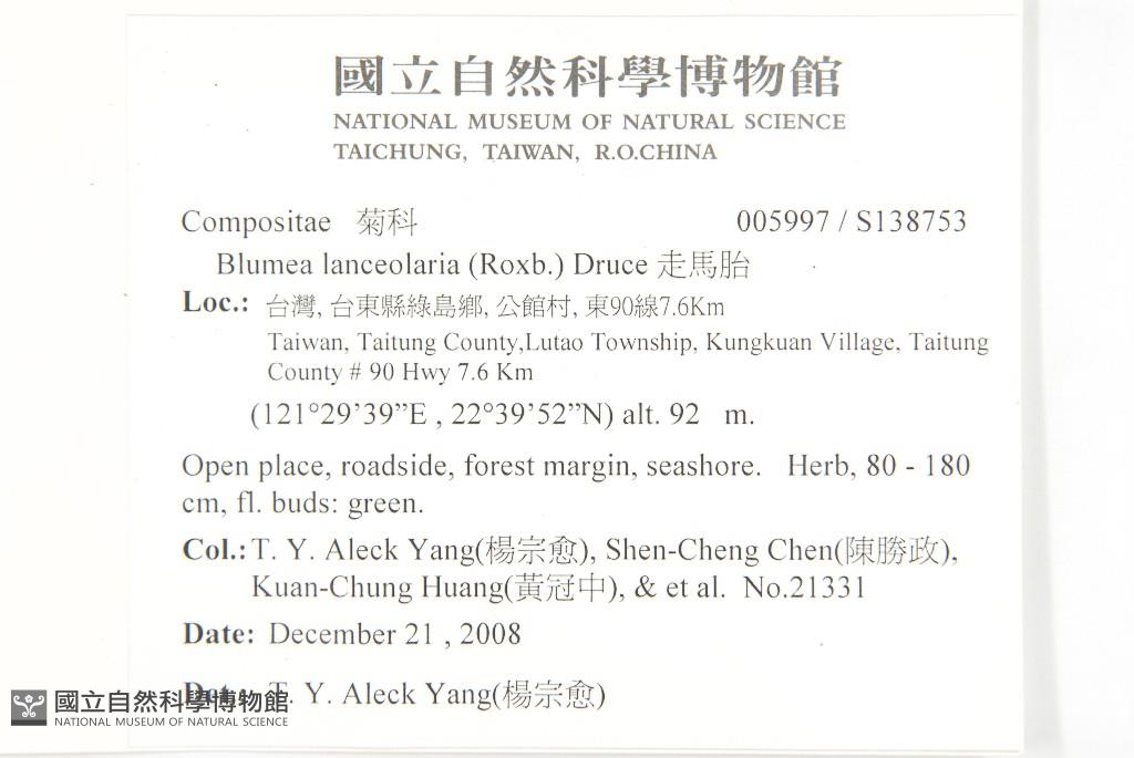 Collector:T. Y. Aleck Yang(楊宗愈), Shen-Cheng Chen(陳勝政), Kuan-Chung Huang(黃冠中), & et al.