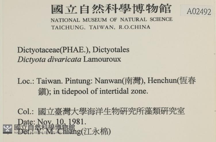 Collector:國立臺灣大學海洋生物研究所藻類研究室