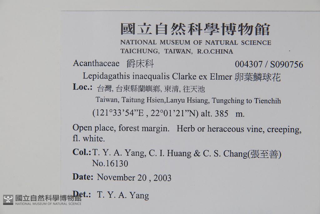 Collector:T. Y. A. Yang, C. I. Huang & C. S. Chang(張至善)