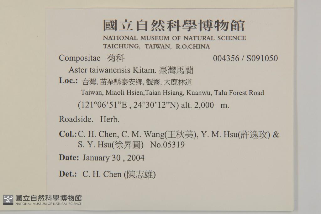 Collector:Chih-Hsiung Chen (陳志雄), Chiu-Mei Wang (王秋美), Yi-Mei Hsu (許逸玫), & al.