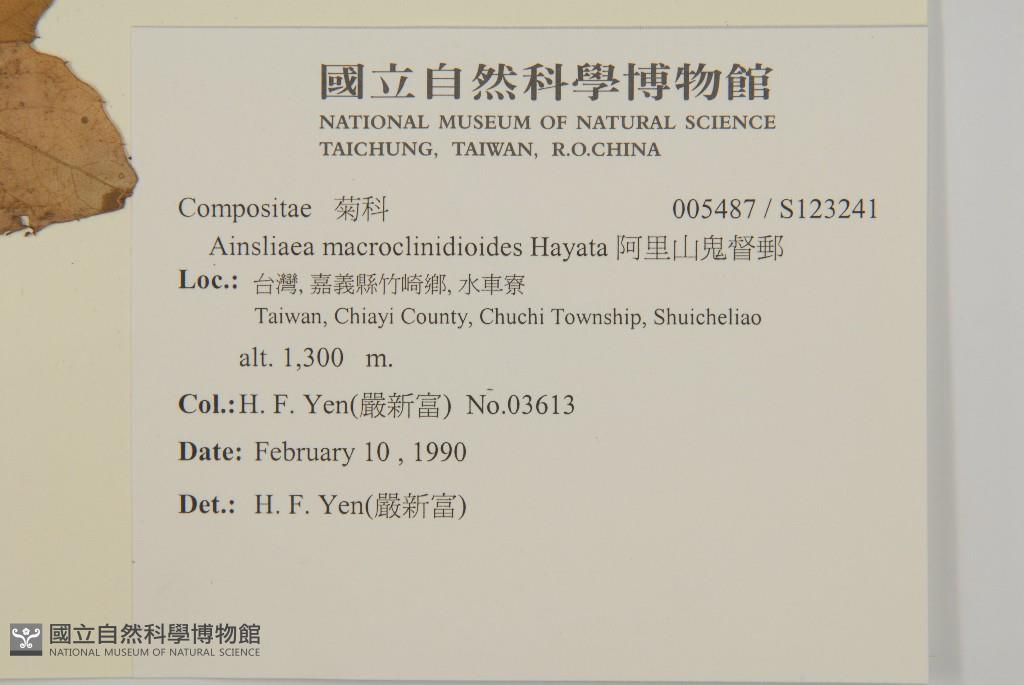 Scientific Name: Ainsliaea macroclinidioides Hayata