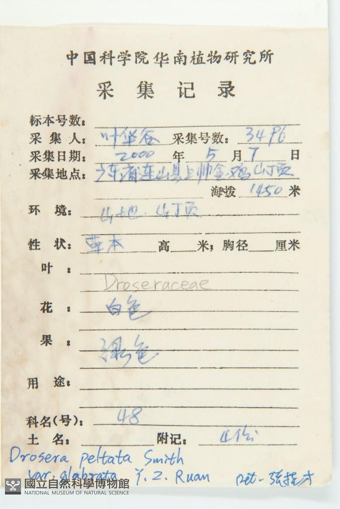 Scientific Name: Drosera peltata Smith var. glabrata Y. Z. Ruan