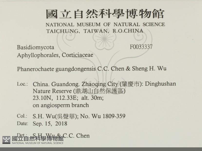 Phanerochaete guangdongensis C.C. Chen & Sheng H. Wu