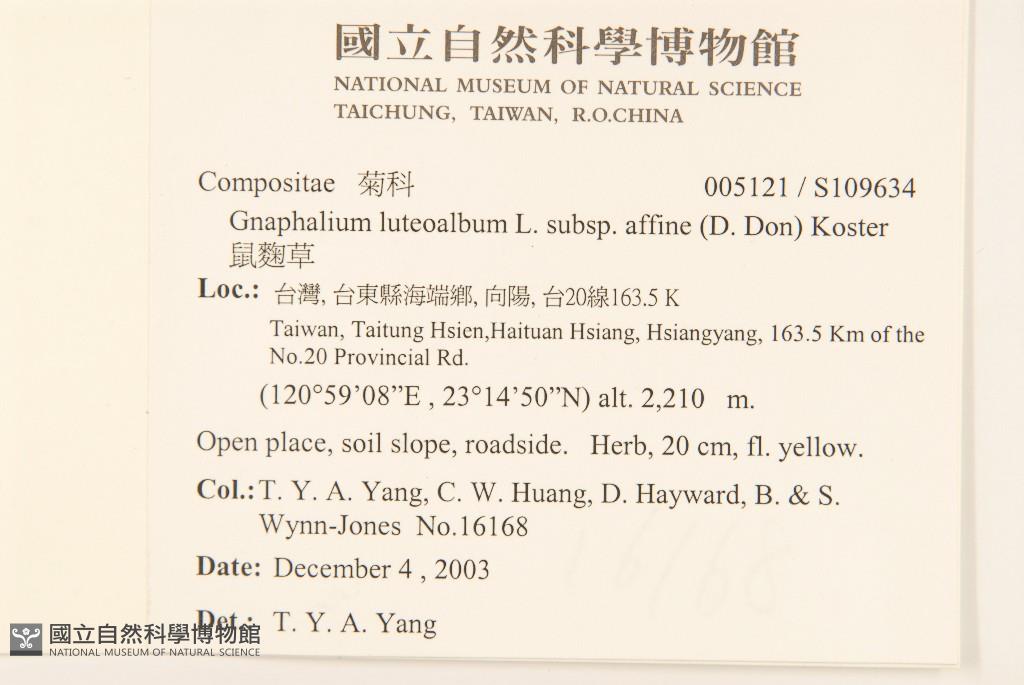 Collector:T. Y. A. Yang, C. W. Huang, D. Hayward, B. & S. Wynn-Jones
