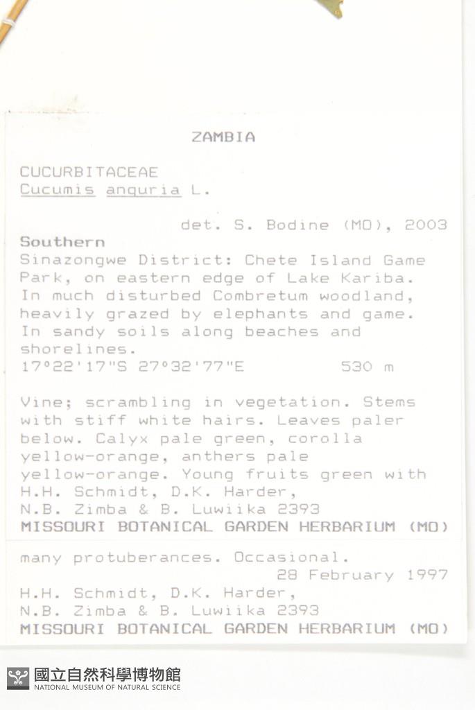 Collector:H. H. Schmidt, D. K. Harder, N. B. Zimba & B. Luwiika