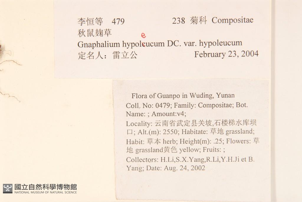 Scientific Name: Gnaphalium hypoleucum DC.