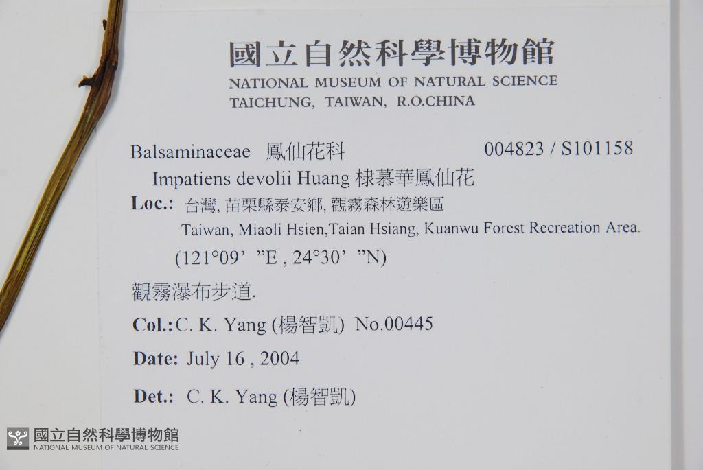 Scientific Name: Impatiens devolii Huang