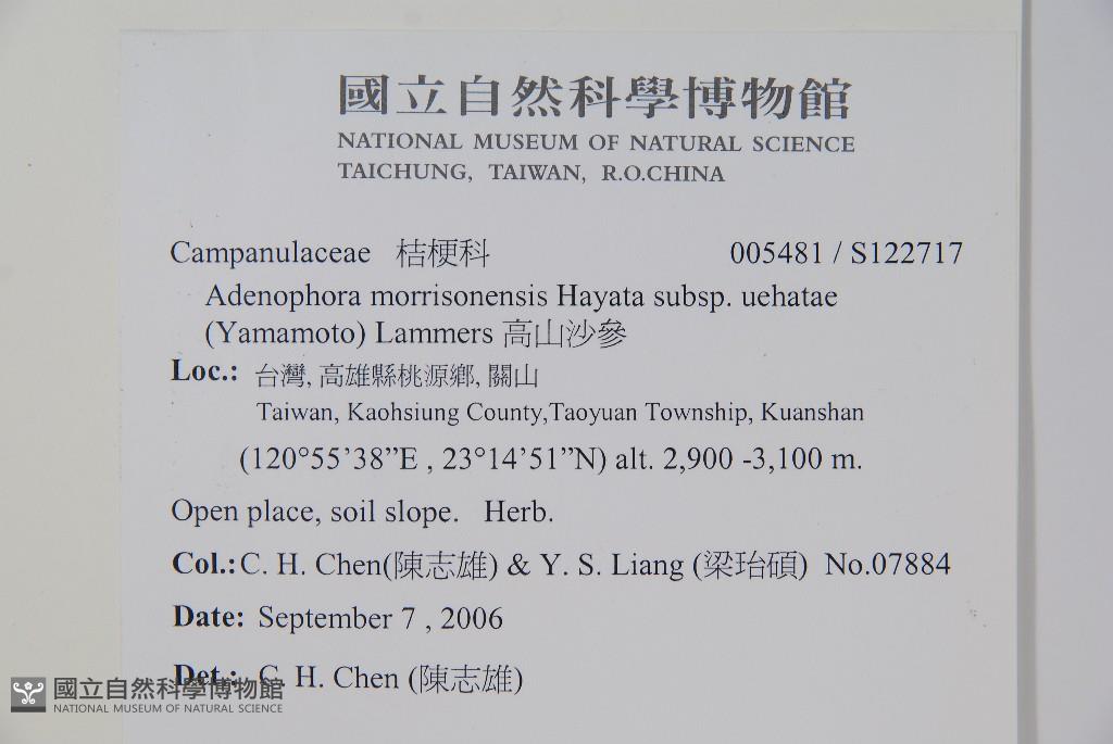 Scientific Name: Adenophora morrisonensis Hayata subsp. uehatae (Yamamoto) Lammers