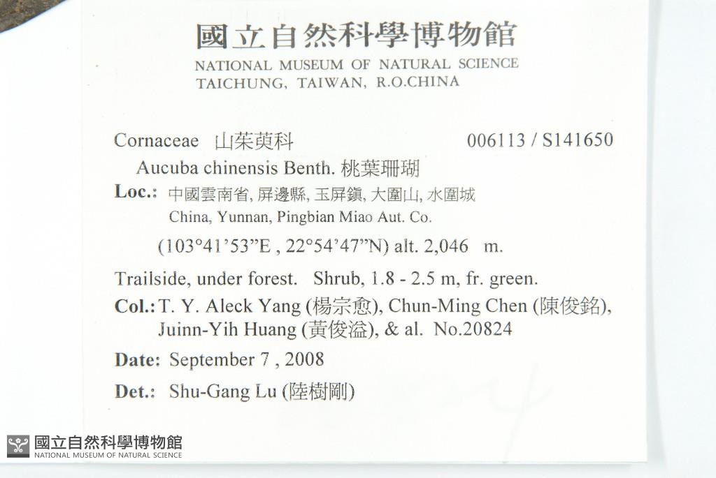 Scientific Name: Aucuba chinensis Benth.