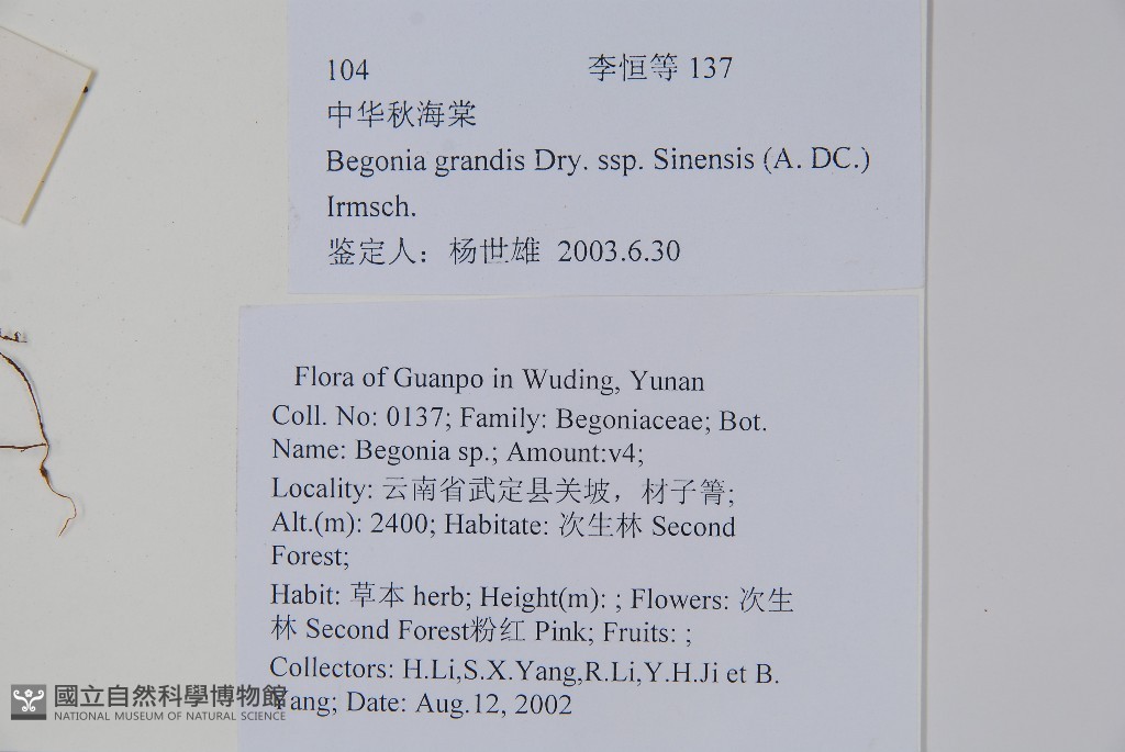 Scientific Name: Begonia grandis Dry. subsp. sinensis (A. DC.) Irmsch.