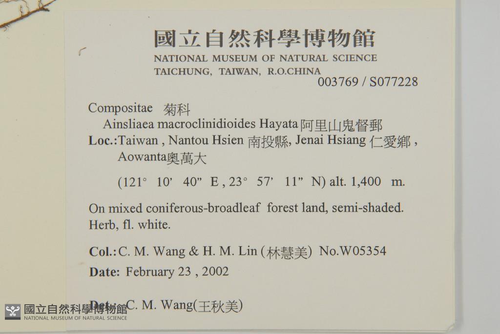 Scientific Name: Ainsliaea macroclinidioides Hayata
