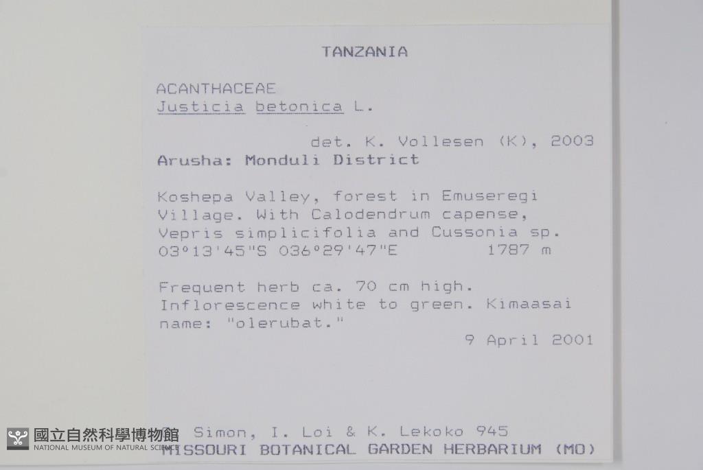 Scientific Name: Justicia betonica L.