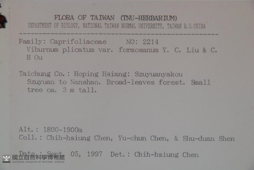 Scientific Name: Viburnum plicatum Thunb. var. formosanum Y. C. Liu & C. H. Ou