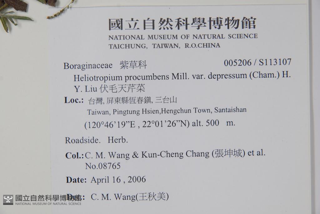 Scientific Name: Heliotropium procumbens Mill. var. depressum (Cham.) H. Y. Liu