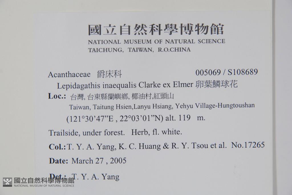 Collector:T. Y. A. Yang, K. C. Huang & R. Y. Tsou et al.