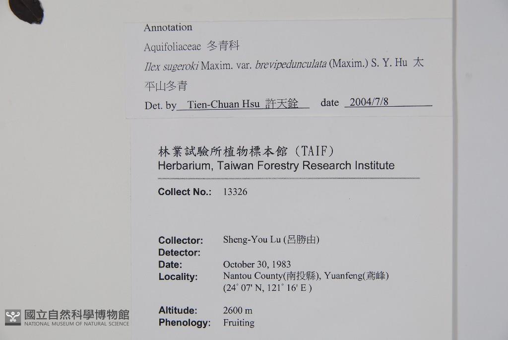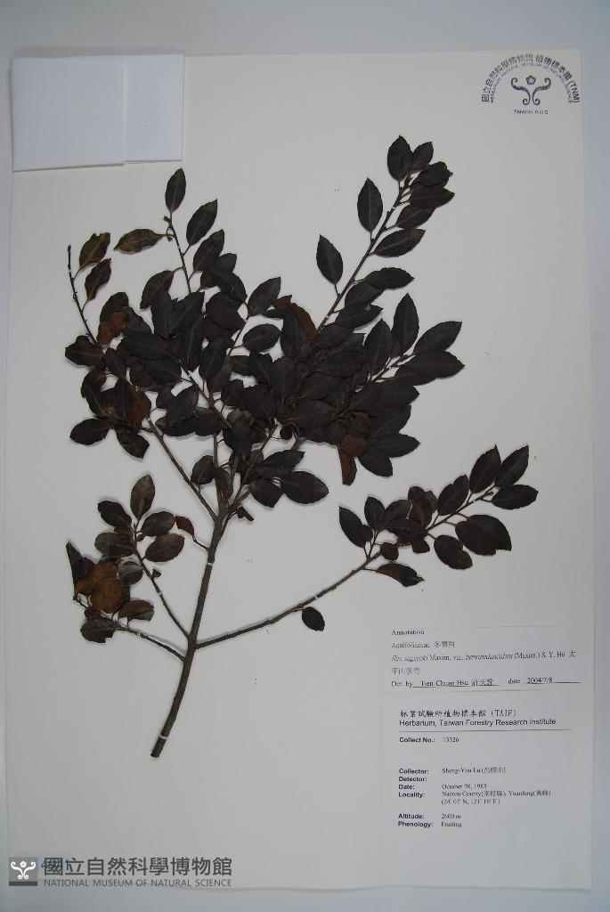Scientific Name: Ilex sugerokii Maxim. var. brevipedunculata (Maxim.) S. Y. Hu