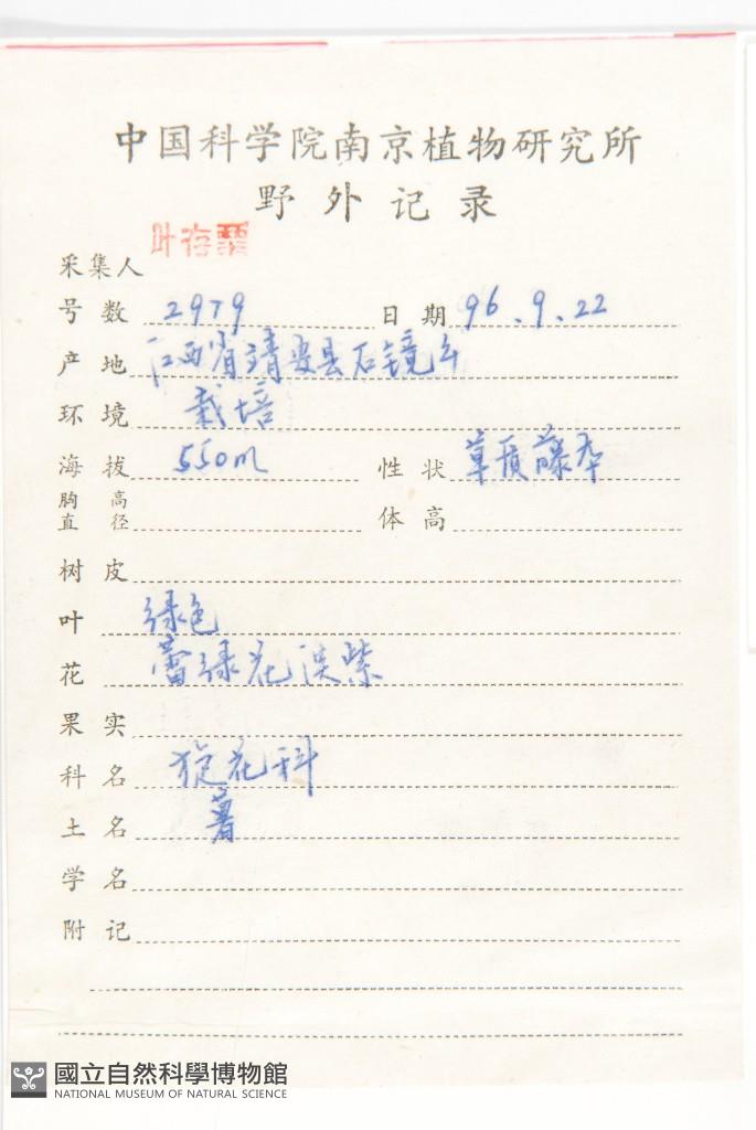 Collector:C. S. Ye(葉存粟)