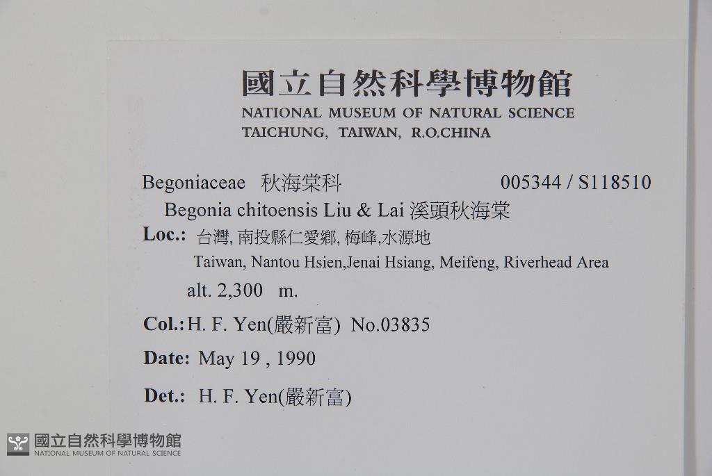 Scientific Name: Begonia chitoensis T.S.Liu & M.J.Lai