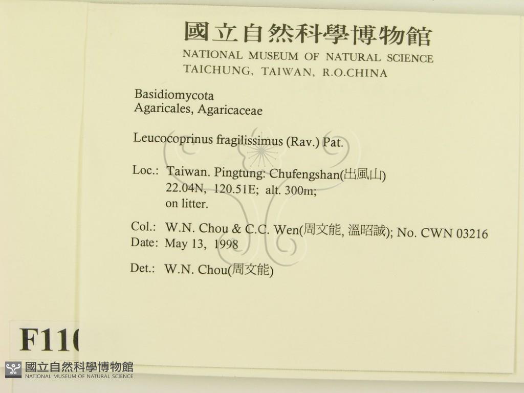 Leucocoprinus fragilissimus (Rav.) Pat.