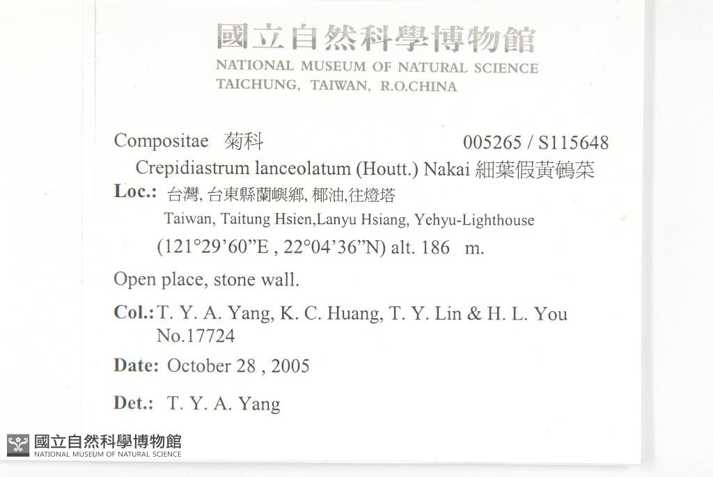 Scientific Name: Crepidiastrum lanceolatum (Houtt.) Nakai