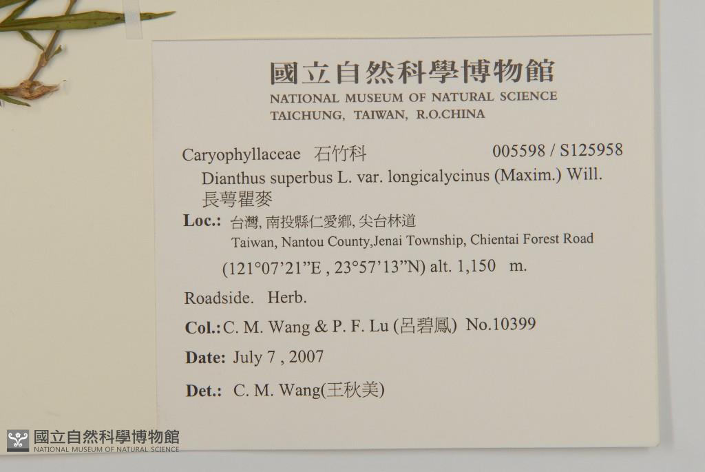Collector:Chiu-Mei Wang (王秋美), & Pi-Fong Lu (呂碧鳳)