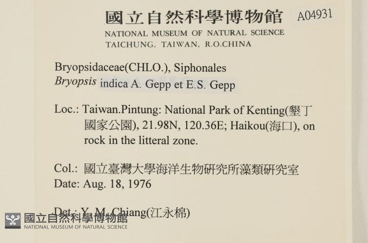 Collector:國立臺灣大學海洋生物研究所藻類研究室