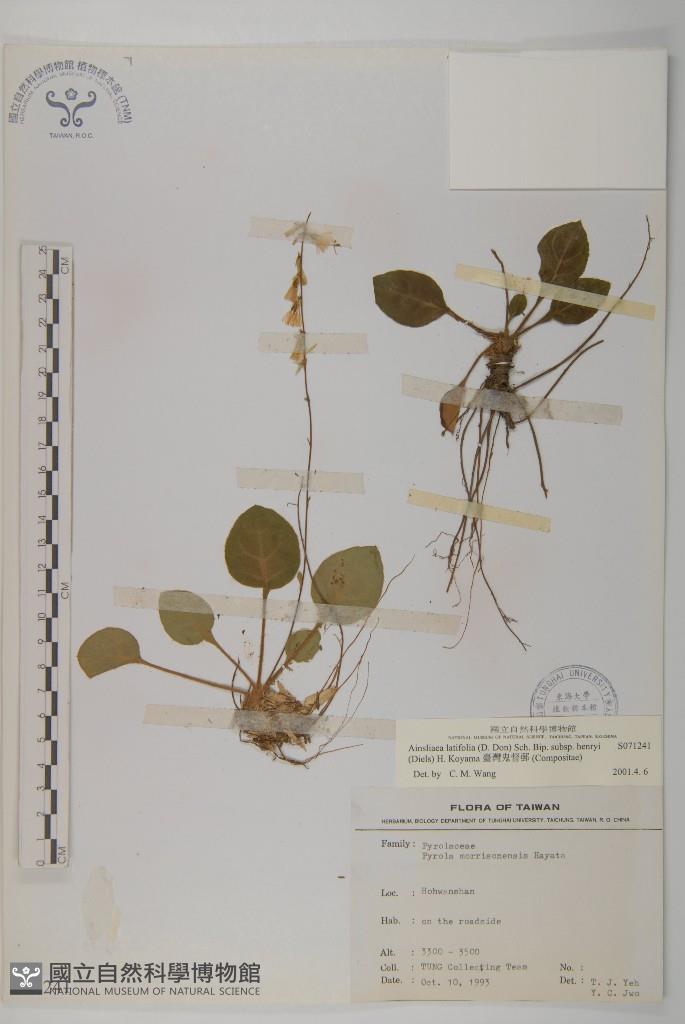 Scientific Name: Ainsliaea latifolia (D. Don) Sch. Bip. subsp. henryi (Diels) H. Koyama
