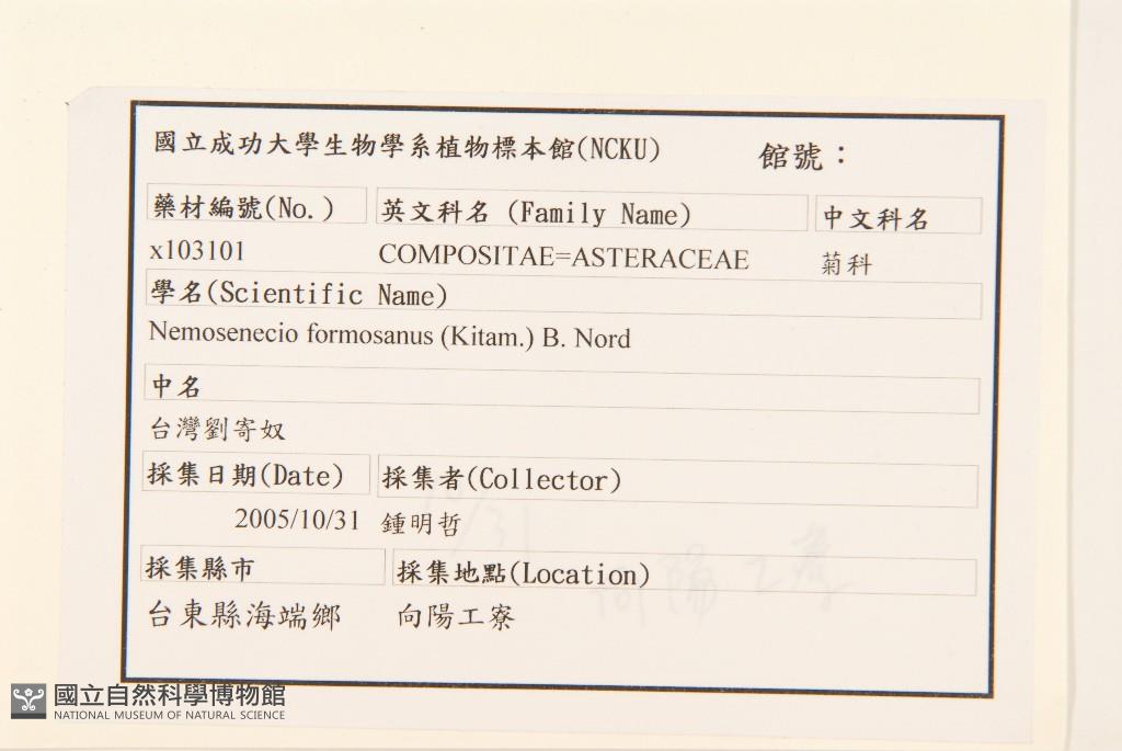 Scientific Name: Nemosenecio formosanus (Kitam.) B. Nord