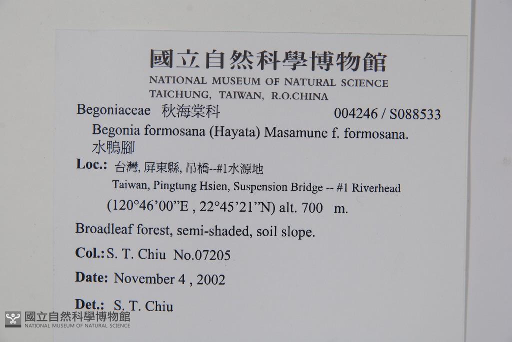 Scientific Name: Begonia formosana (Hayata) Masam.